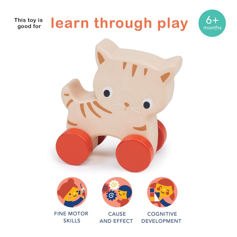 - PURR-FECTLY ROLLING - A gentle push is all it takes to set this cute kitten in motion! Our wooden Kitten on Wheels toy encourages babies and toddlers to be active and move around with their new feline friend, enhancing their coordination, balance, and motor skills.