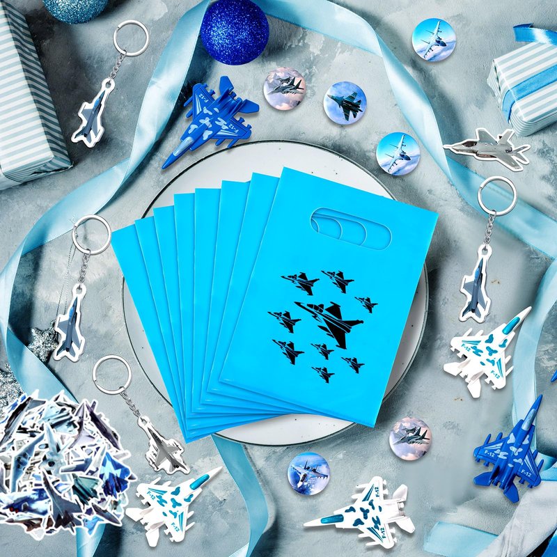 - Sufficient Quantity: there are 12 pieces of silicone bracelets, 12 pieces of plane button pins, 12 pieces of airplane keychains, 50 pieces of plane stickers, 12 pieces of airplane toys, and 12 pieces of plane plastic bags, 110 pieces in total, ample quantities and diverse styles can satisfy your party favor needs