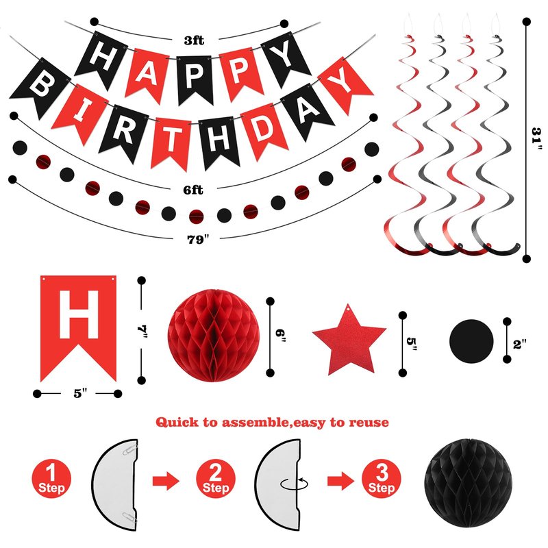 - Package Including: With our Birthday Party Decorations package, you'll have everything you need to create the perfect party atmosphere. You can get 1pcs Happy Birthday Banner, 6pcs Honeycomb Balls, 8pcs Stars Swirls Streamers, and 1pcs Circle Dots Decorations. No need to worry about running around and finding individual items. It's convenient package.