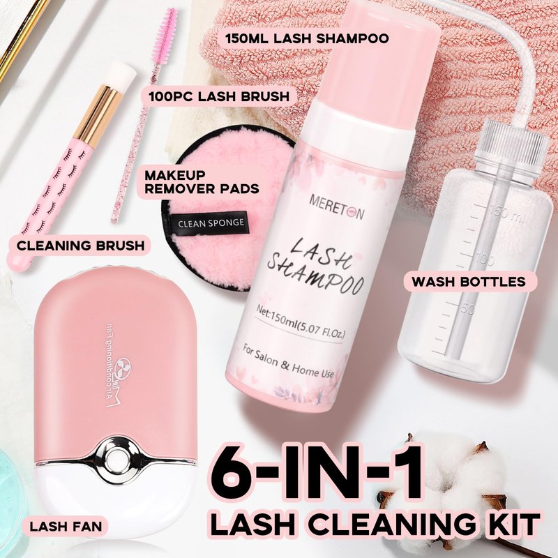 - 【Lash Cleaning Kit】The eyelash extension cleanser kit includes 150ml large capacity lash shampoo, 1pcs portable USB Mini fan dryer,1pc reuse makeup pad, 1 pc soft cleansing brush, 100 pc Eyelash brush, 1pc 150ml washing bottle and 1pc beautiful gift box. A variety of accessories to meet all your daily needs of keeping your eyelashes perfectly clean. Comes with a whole set to meet all needs of keeping your lashes perfectly cleansed.