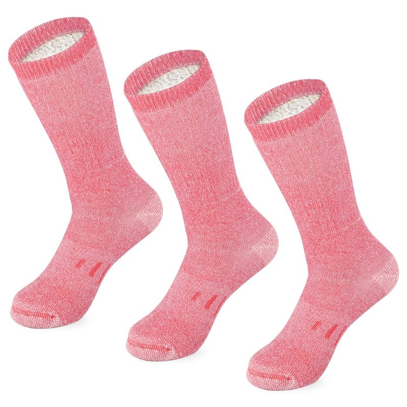 - PACKAGE INCLUDES: Set of 3 Pairs of Merino Wool Blend Winter Cold Weather Crew Length Socks for Men and Women in Pink / Small | MATERIAL: 75% Merino wool, 15% Nylon, 10% Elastic