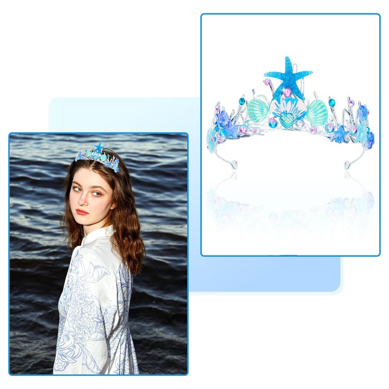 Mermaid Crown Pearl Mermaid Birthday Decorations Mermaid Party Favors Mermaid Crown Adult Mermaid Headband Hair Accessories Halloween Costume women Mermaid Blue Tiaras Seashell Starfish Fish Tail
