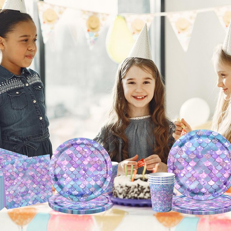 - 💜【MERMAID BIRTHDAY DECORATIONS】Happy mermaid theme birthday party !The mermaid party decorations will meet your party needs.It includes 20pcs 9inch purple mermaid plates,20pcs 7inch mermaid paper plates,20pcs mermaid cups,20pcs mermaid napkins. You can easily create lively party atmosphere, giving your party a very formal and unique feeling.