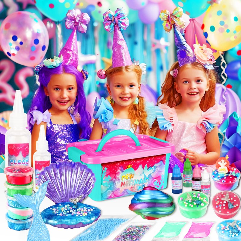 - MERMAID MAGIC: This gift set includes mermaid and fishtail, slime making stuffs, plus the add-ins to add shimmering fun