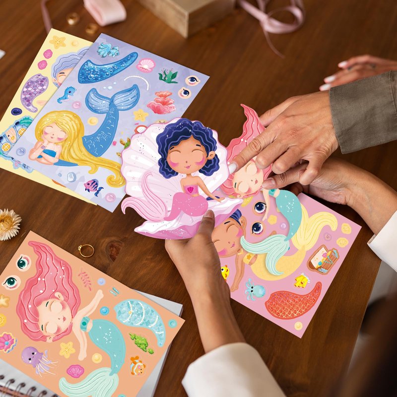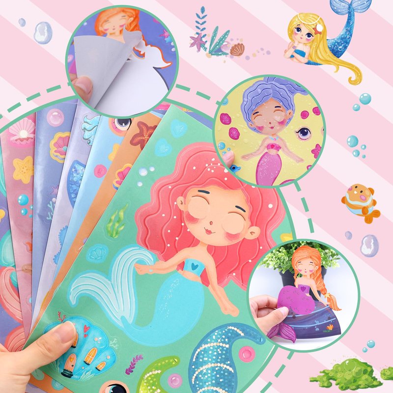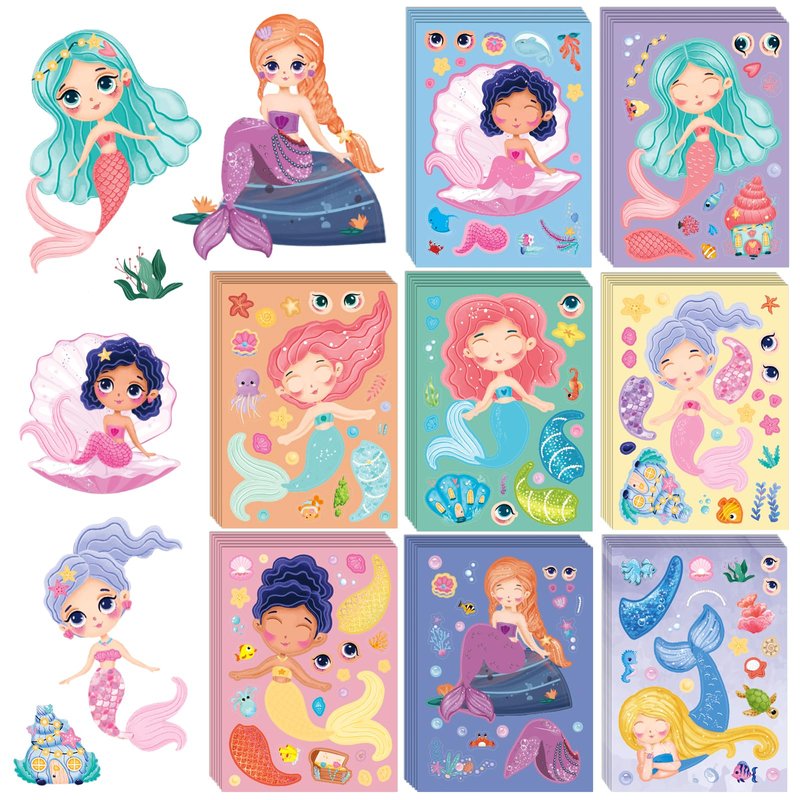 The cute mermaid stickers for birthday party, class craft production, exercise hands and mind coordination ability. Let them choose eyes, mouth and hats for their favorite style create their own special project and compare it with their friends.