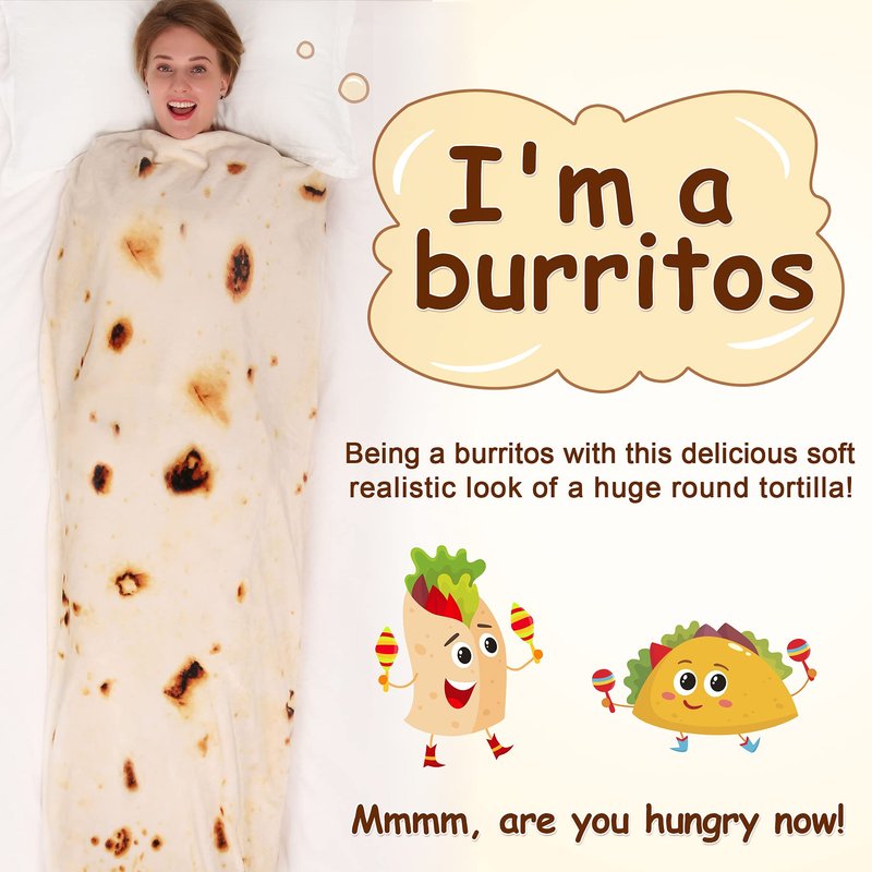 - Professional Design: Our giant tortilla throw blanket 2.0 with a more realistic tortilla pattern and a comfortable single-layer design, when you are wrapped inside, the soft and warm tortilla wrap blanket will make your friends jealous - they also want to be giant human tortilla. Funny gifts for teen girl and teen boy.