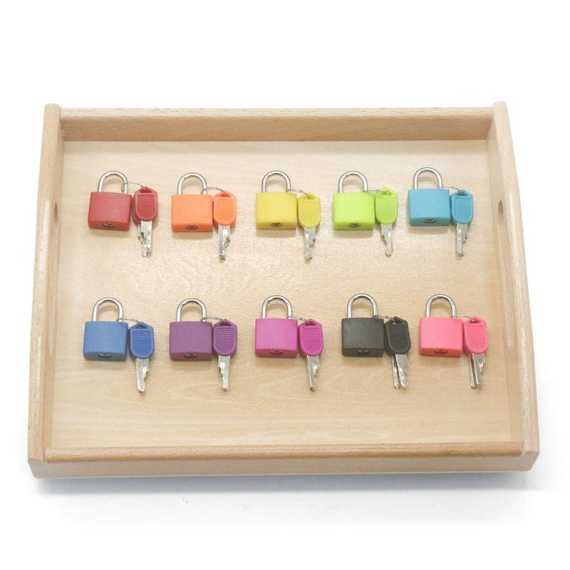 - Pre-school Educational Prop: This practical life learning activity toy includes a tray, 10 locks of different color, and each lock has a different number of keys. Compact and convenient, it can be carried with you, suitable for various venues.