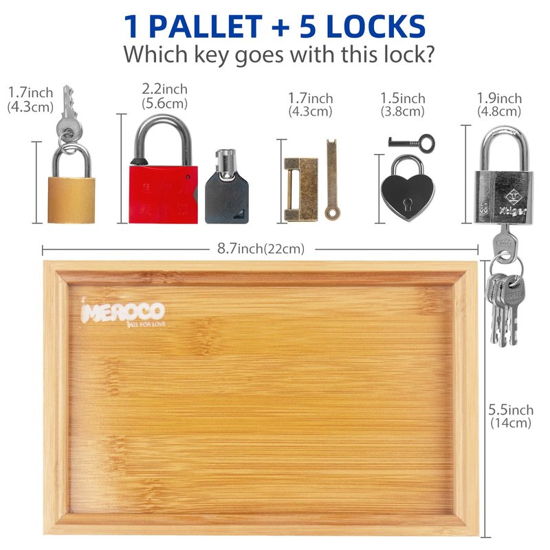 MEROCO Lock and Key with Wood Tray Set Fine Motor Skill Sorting Learning Toys Travel Games for Toddlers 3-5 Years