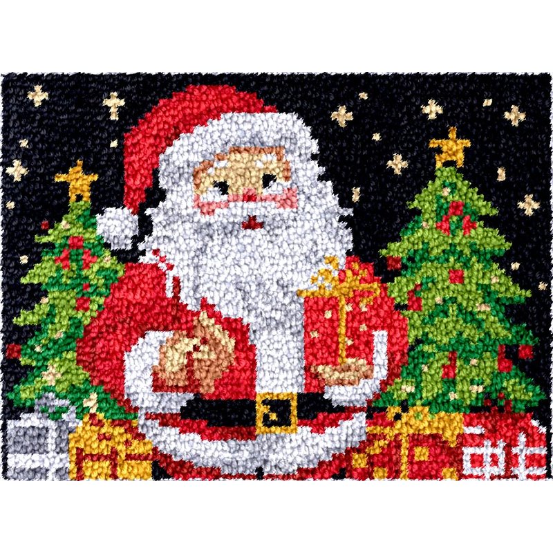 Merry Christmas Santa Clause Latch Hook Rug Kit for Adults Easy Carpet Cushion with Printed Canvas Crochet Yarn Craft DIY Hooking Tapestry for Home Floor Decoration Pets Pads 52x38cm(1)