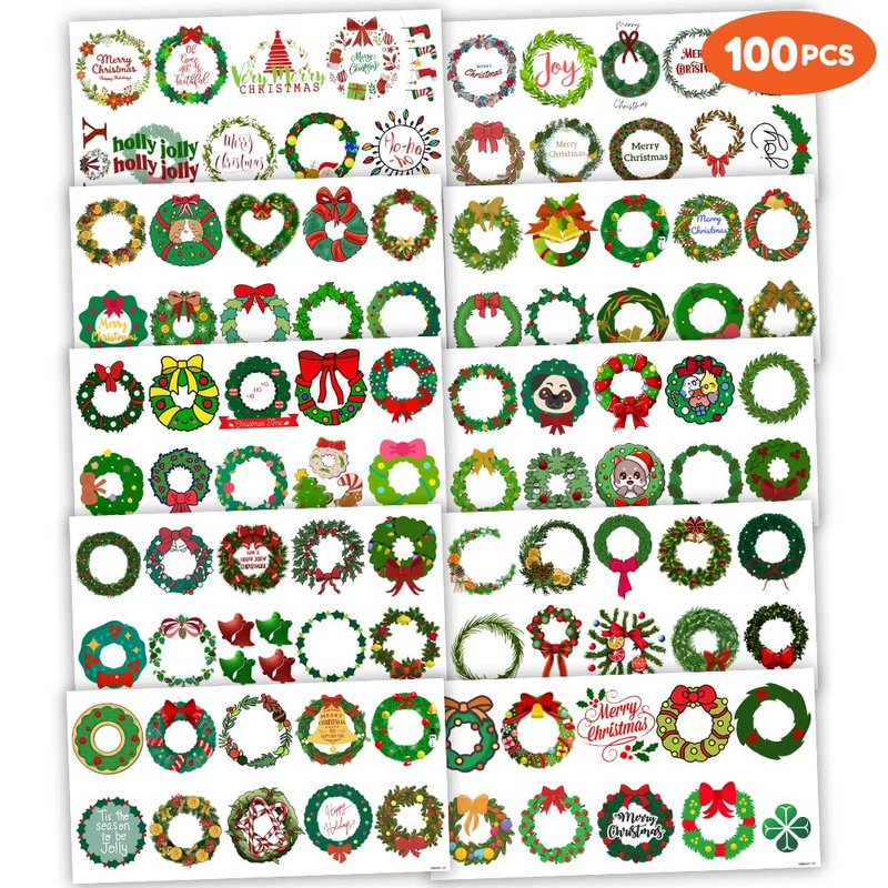 Merry Christmas Temporary Tattoos Wreath Birthday Party Decorations Favors Supplies Xmas Themed Cute Stickers 10 Sheets 100 PCS Gifts for Baby Girls Boys Class School Carnival