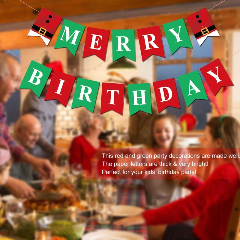- ★ The Xmas theme birthday decorations are made of Eco-friendly cardstock.,sturdy and can be reused.