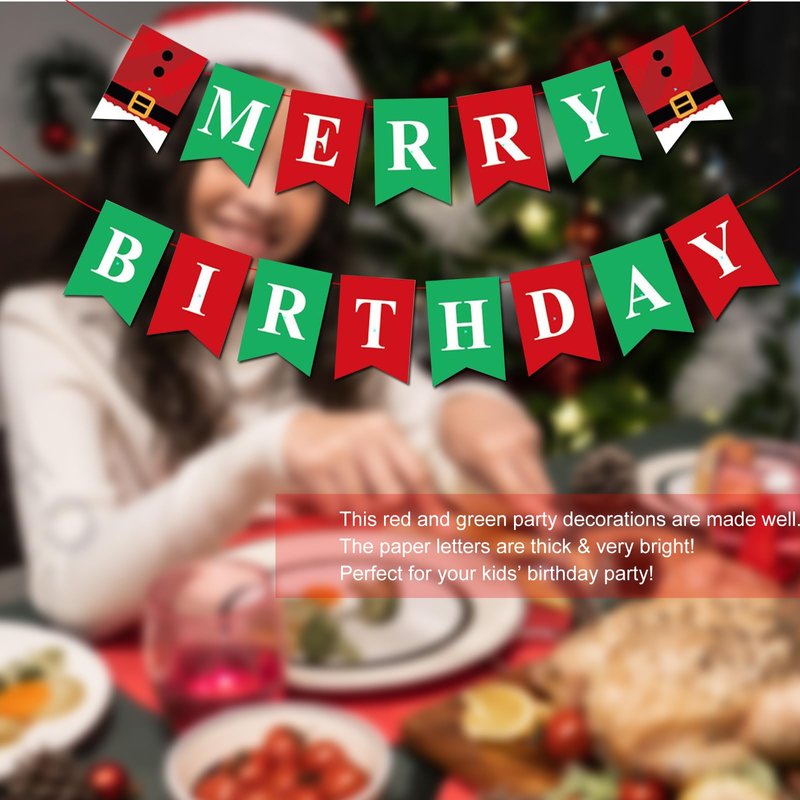 Merry Christmas Themed Birthday Party Decorations Happy Birthday Xmas Banner Red and Green Glittery December Xmas Birthday Party Supplies