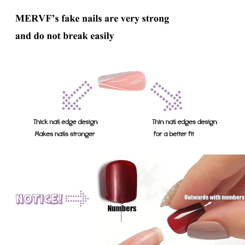 • [Easy to Use] Just for 5 minutes. Coffin press on nails just choose a right size of the nail, polish the nail bed, apply the glue and press it for about 20 seconds. You can get a new nail by yourself without wasting time and more money at the nail salon.