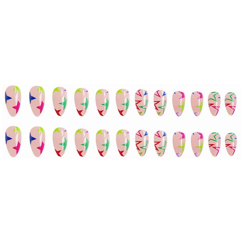 MERVF Medium Press on Nails Almond Fake Nails Colorful Star Stiletto Glue on Nails with Y2K Design Neon Acrylic False Nails Press ons 24pcs Glossy