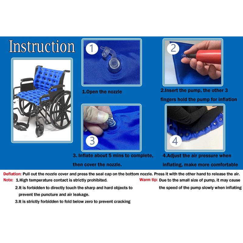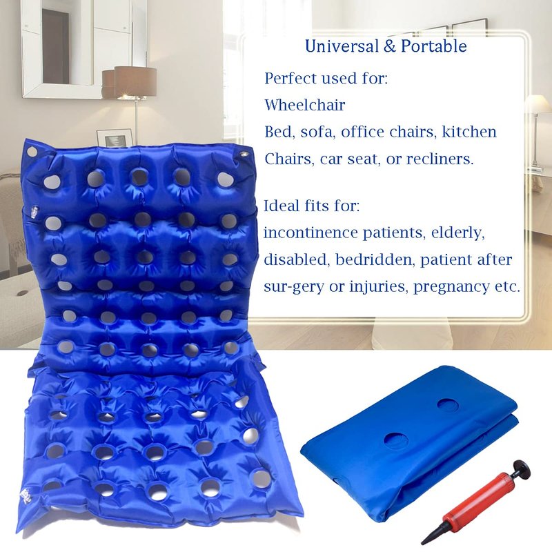 - Adjust the air pressure when inflating, causing the cushion to be a bit hard and making the elderly feel uncomfortable. Great for using on wheelchair, bed, sofa, office chairs, kitchen chairs, car seat, or recliners.