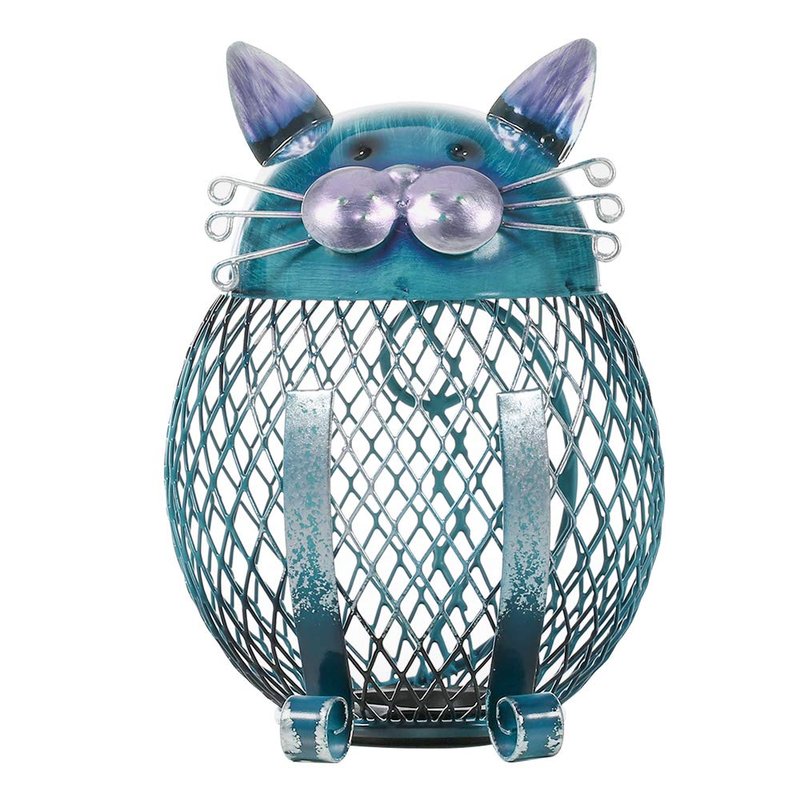 - [Quality Material] Sturdy and durable handmade metal sculpture with delicate workmanship and cat shaped reticulated hollowed out money bank that can be seen through. The surface is painted with environmentally friendly, non-polluting paint, which maintains a smooth surface permanently. The cat change jar is very well packaged.