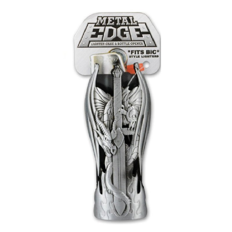 Metal Lighter Case for BIC Lighters, Lighter Protector and Bottle Opener - Dragon Design