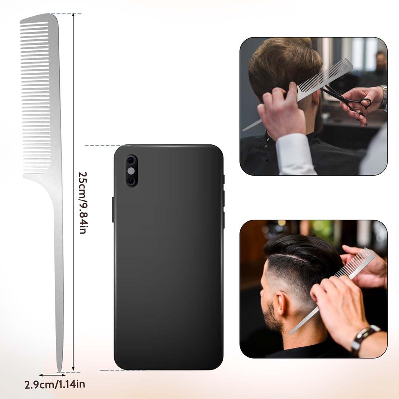 - Rat Tail Comb: The parting tip of the metal rat tail comb can help you part your hair, ideal for sectioning and styling.