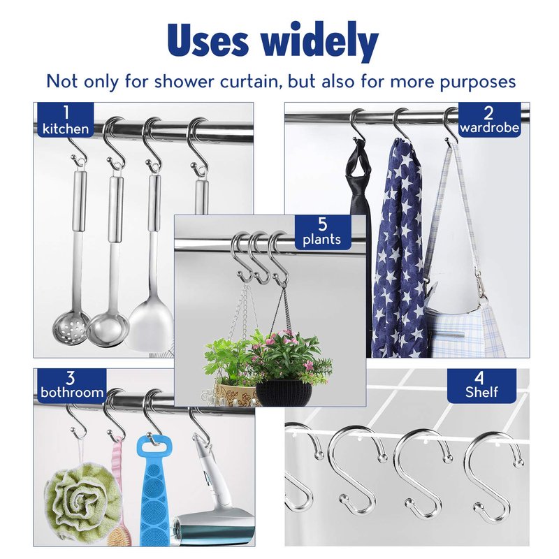 - WIDE RANGE OF USES:not only for shower curtains, but also for hanging Towels,Pots and Pans,Coffee Cups, Clothes,Plants in Bathroom, Kitchen, Bedroom, Office and Garden,etc.