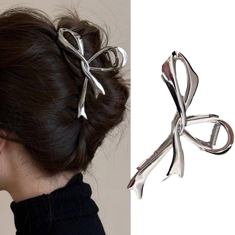 Metal Silver Hair Claw Clips Hair Bows for Wome...