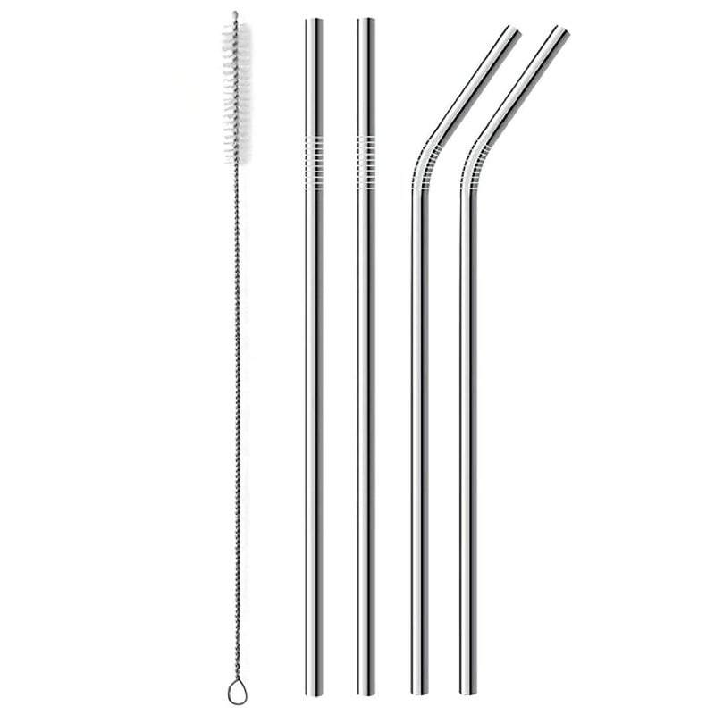 2 x straight stainless steel straws,