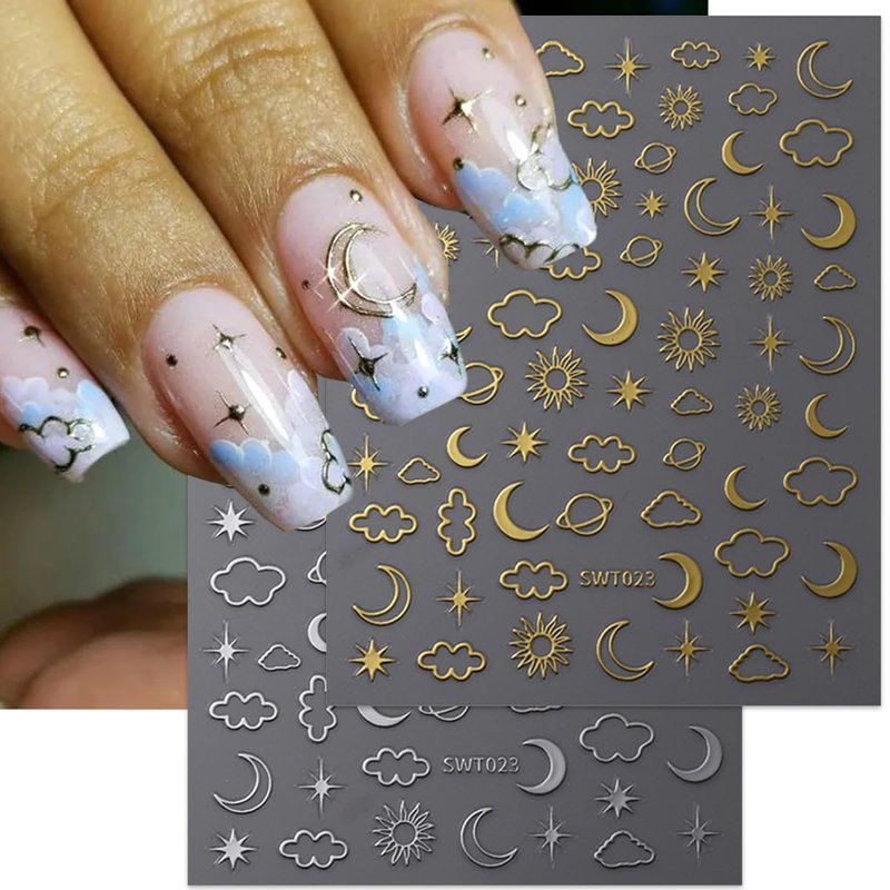 - 🌟Easy to Use: This moon nail decals is self-adhesive. just use tweezers to tear off the cute nail sticker, and then stick the 3d moon cloud nail stickers on the nail.You can also use nail gel to cover to make the beautiful stickers last longer.