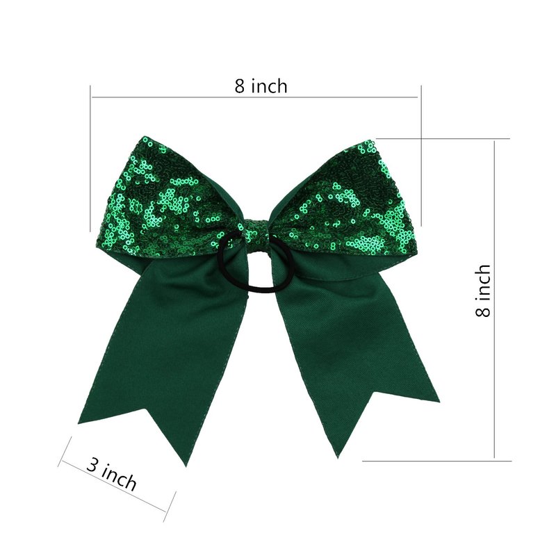 Metallic Sequin and Holographic 8 Inch Cheer Bow Cheerleader Cheerleading Jumbo Cheer Bow Hair Tie (Green Sequin)
