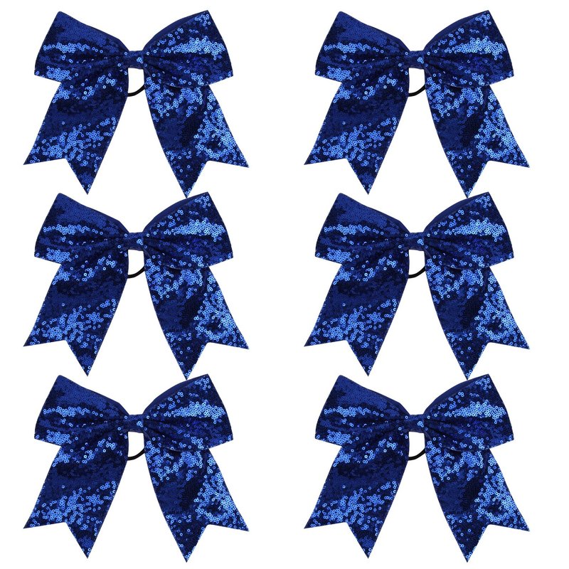 Metallic Sequin and Holographic 8 Inch Cheer Bow Cheerleader Cheerleading Jumbo Cheer Bow Hair Tie(Blue Sequin)