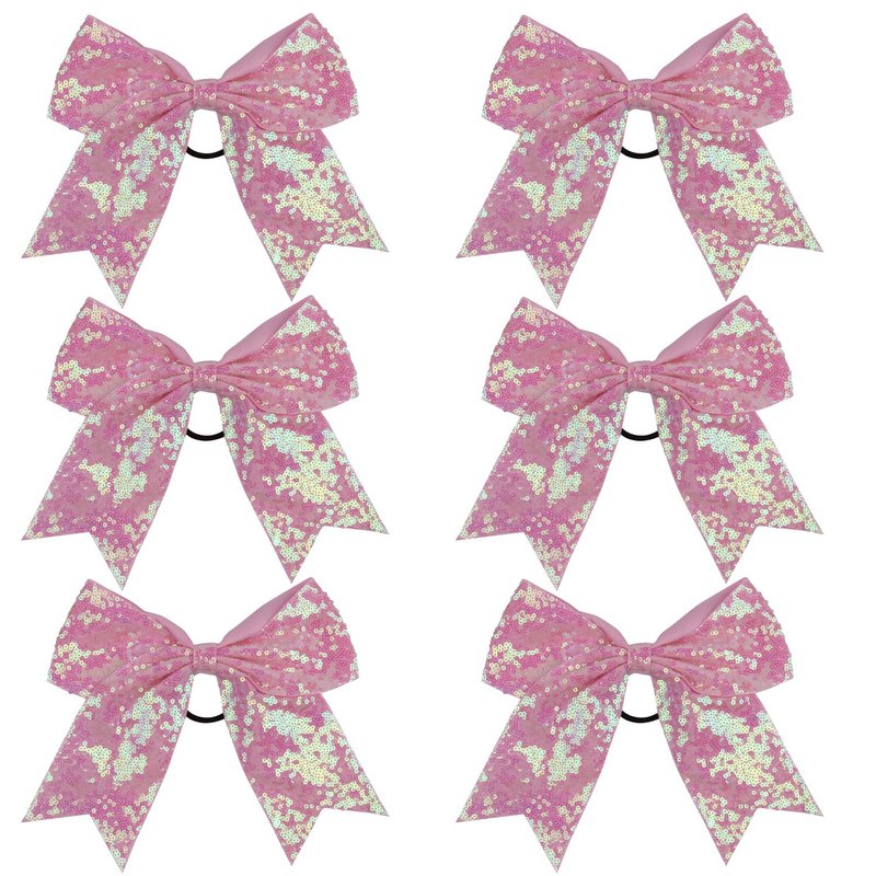 Metallic Sequin and Holographic 8 Inch Cheer Bow Cheerleader Cheerleading Jumbo Cheer Bow Hair Tie(Pink Sequin)