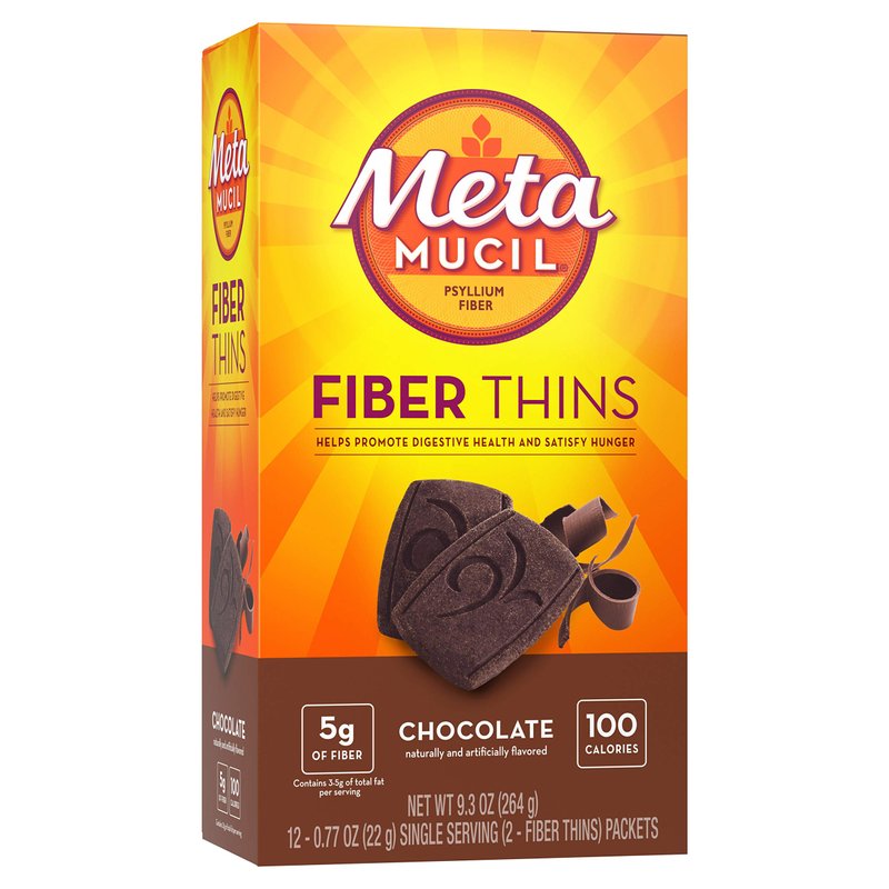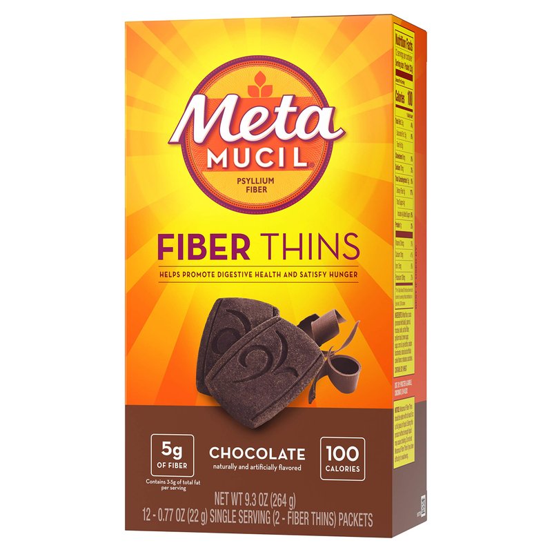 Metamucil Fiber Thins, Psyllium Husk Fiber Supplement, Digestive Health Support and Satisfy Hunger, Chocolate Flavored, 12 Servings