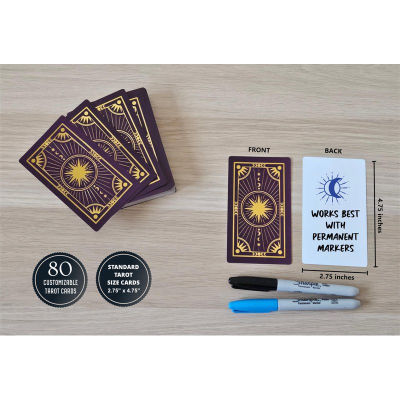 - [CUSTOMIZABLE] Create your own oracle deck or tarot deck with these DIY tarot cards. Each card has a printed Celestial sunburst design on the front side, and a blank white back side that you can personalize to your needs. With a little bit of effort, you could enhance your divination tool box with the ultimate oracle deck that embodies your energy.