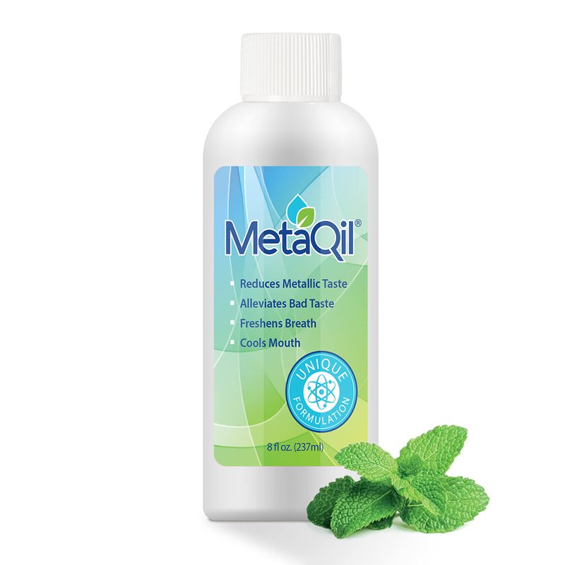 - Alleviate Metallic, Bitter, & Unusual Tastes - MetaQil is an innovative oral rinse that cools the mouth to provide instant relief and comfort for metallic taste symptoms caused by chemotherapy, radiation, COVID-19, medication, or GERD