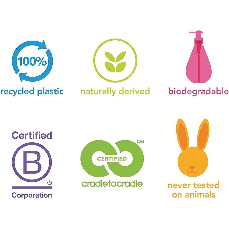 - Ergonomic nozzle spray designed to cover your floors in fewer sweeps and help avoid puddling.. Bottle (minus lid) made of 100% recycled plastic (PCR)..
