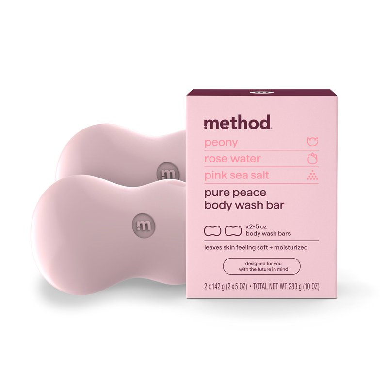 Method Bar Soap, Pure Peace, Pure Peace, Rose Water, Peonies + Pink Sea Salt notes, Plastic Free, 2 bars, 5oz each
