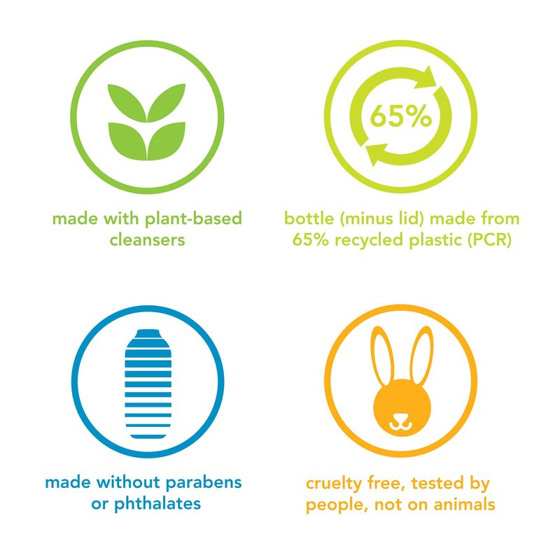 - Biodegradable formula made with plant-based cleansers.