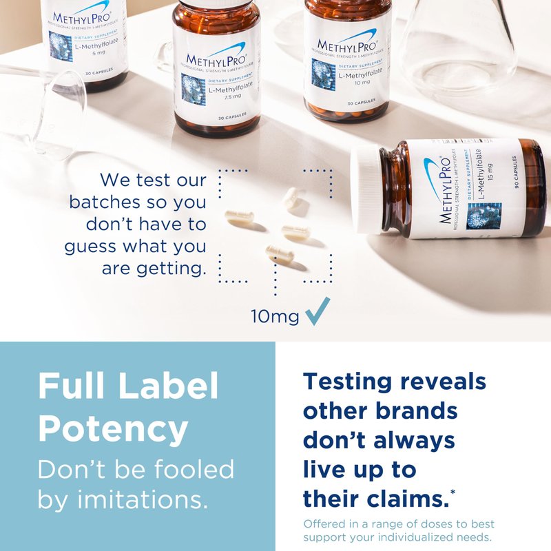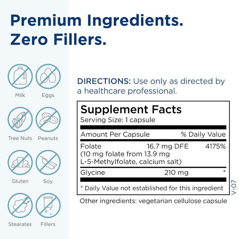 Our 5 MTHF supplement may be the methylated folate supplement you've been looking for. It comes in a wide range of dosages, so you can tailor the 5-mthf supplement to your own nutritional needs. Plus, because L- methylfolate is such an important ingredient for a wide range of bodily processes and systems, you can use this 5 methylfolate supplement to support everything from a balanced mood to your daily heart health to your ongoing cardio routine. So don't limit yourself to the reduced expectations you may have had for another 5 methyl folate supplement for women or men, this is a 5mthf supplement that can truly help you support your body's production of mood balancing neurotransmitters, as well as your mood, cardio, and nerve function. Perhaps most importantly, this l-methylfolate supplement is also a safe l - methylfolate formula for those who have a reduced ability to convert folic acid to 5-MTHF, and so it may be able to serve as a mthfr supplement for these parties. Of course, no matter your use case, we still suggest speaking with your doctor before trying any new supplement, vitamin or formula; so be sure to ask how L-Methylfolate may be able to support your day to day.*