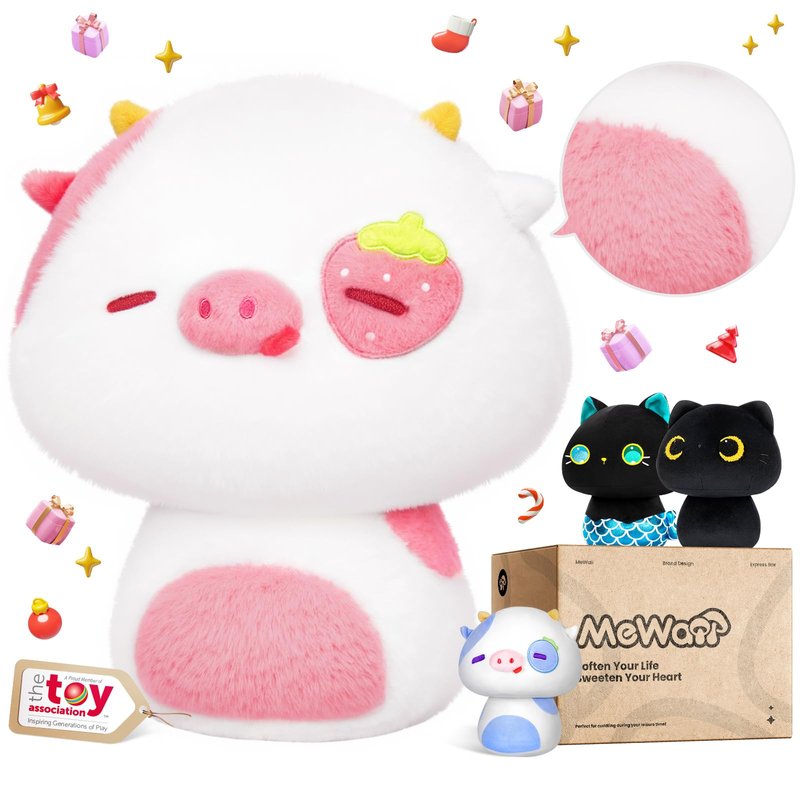 Mewaii Squishy Cloud-Like Softness, Trending Kawaii Strawberry Cow Mushroom Plush Pillow, A Must-Have Collectible for Young Adults, Perfect for Kids, Toddlers Girls, Stuffed Animal (8")
