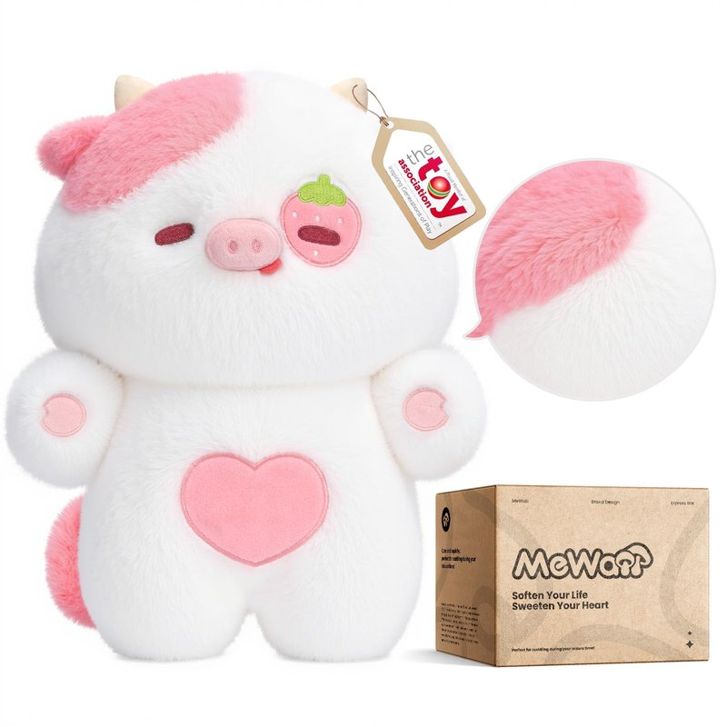 - Strawberry Cow Pillow Cute Design: With its lovely and lifelike cow stuffed animal pillow, a smiling appearance, and soft fabric. All bad emotions and work stress will disappear when you embrace stuffed toys! This cow plush can accompany you or your friends through lonely times.