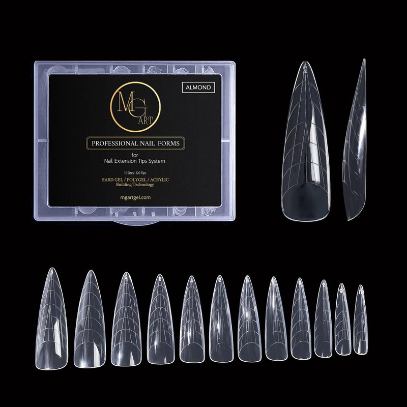 MGART Dual Nail Forms ALMOND Extension Structure Poly nail gel Nail Forms Full Cover Nail Molds 12 Sizes for Solid Nail Gel Glue Nail Art Design Salon&DIY