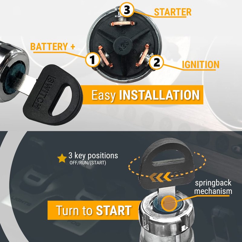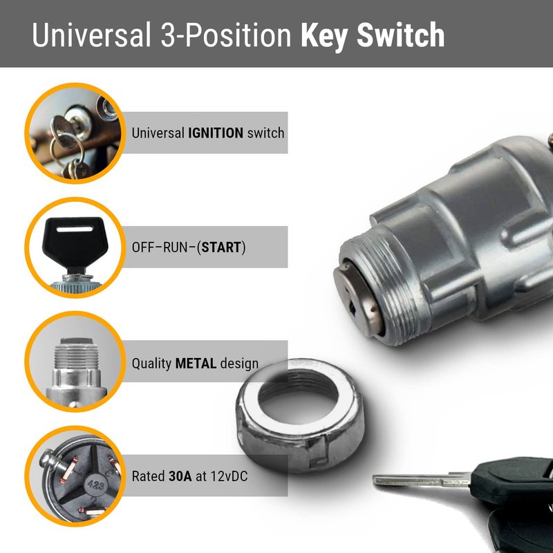 MGI SpeedWare 3-Wire Universal Ignition Key Switch for Cars, Buggies, Mowers and Go Karts, Off/On/(Start)