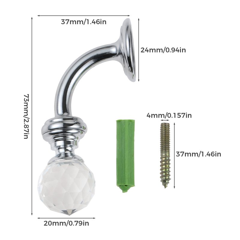 - 【SIZE】The total length of the dish towel hook is 73mm/2.87in and the height is 37mm/1.46in. The diameter of the crystal ball is 20mm/0.79in. The size is proper for hanging your hand towel, sheer curtain and so on, won't be gaudy or obtrusive.