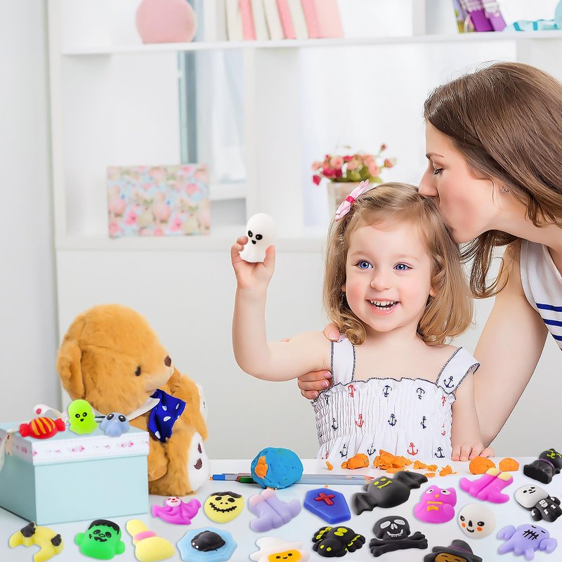 MGparty 42Pcs Halloween Mochi Squishies Toys Squishies for Kids Party Favors Cute Squishies Stress Reliever Anxiety Toys for Halloween Party Favors Treat Goody Bag Filler Gifts