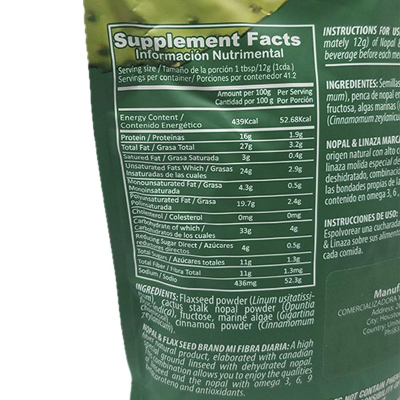 Mi Fibra Diaria Nopal & Linaza. Nopal Cactus and Flax Seed Fiber Dietary Supplement. 17.6 oz.