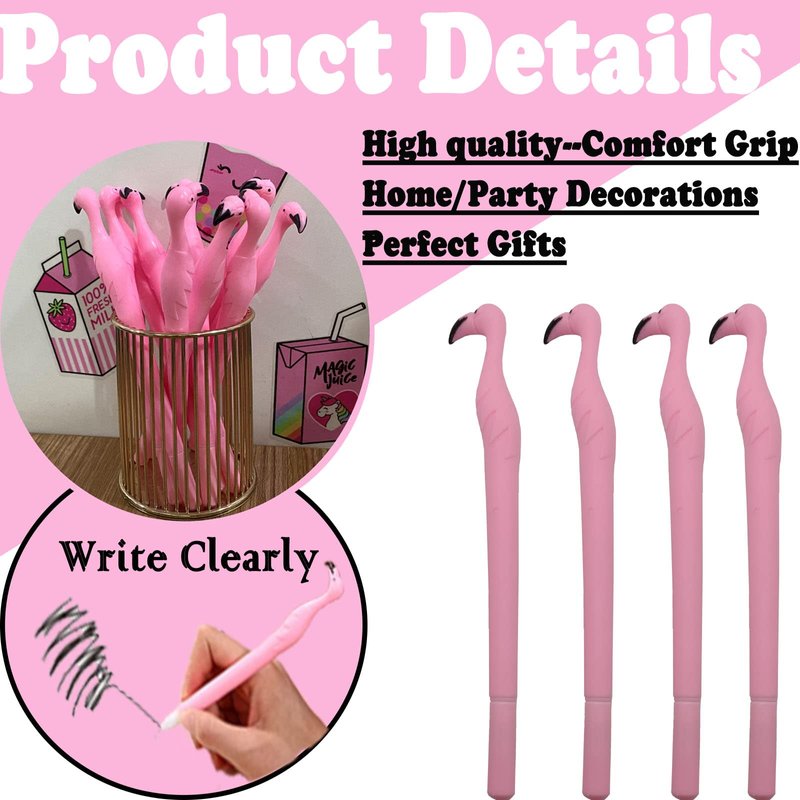 The flamingo pens cases are soft Silicone,Ink is 0.5mm Needle Tube Pen Lead, Moderate Thickness, Smooth Writing,NO Ink Leakage. Perfect Gifts: For Relatives,Friends and Colleagues, as Home Decoration, Stage Props, Party Decoration, etc. Interesting office stationery: Creative flamingos are placed in the office to add interest to work. Adding romance to your life:the flamingo pen is light and convenient, easy to carry, and can be kept in your bag anytime and anywhere.