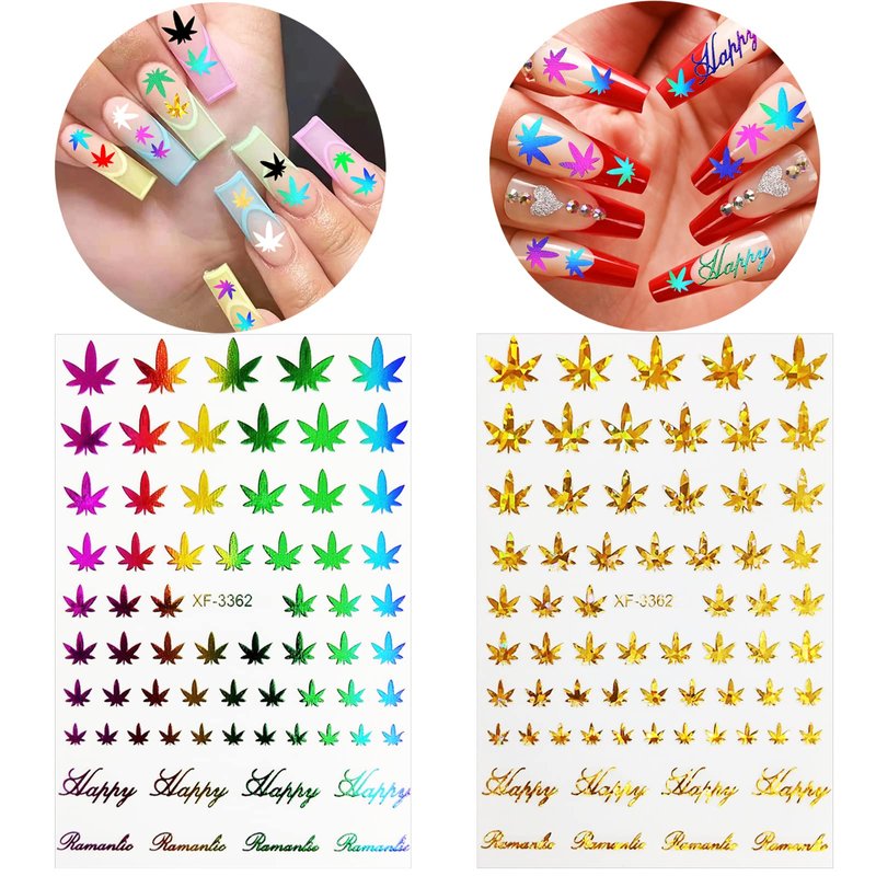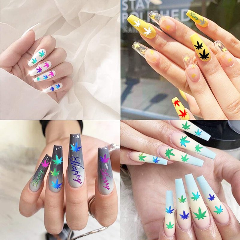 These pot leaves nail stickers are self-adhesive, you can just stick them on your nails, easy and