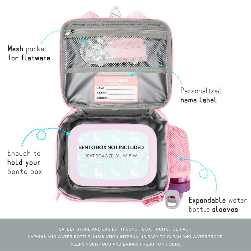 - 【Insulated and Easy-clean】The insulation interior of the unicorn lunch box for girls is easy to clean and waterproof, keeps your food and drink insulated nicely for hours, improves the freshness and taste, gives your child a healthy life.