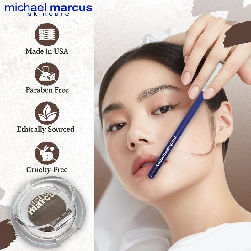 michael marcus Makeup Cake Eye Liner & Eyeliner Brush (Espresso) - Water Activated Dry Pressed, Long-Lasting & Smudge Resistant Eyeliner - Cruelty & Paraben Free - For Beginner & Pro Makeup Artist