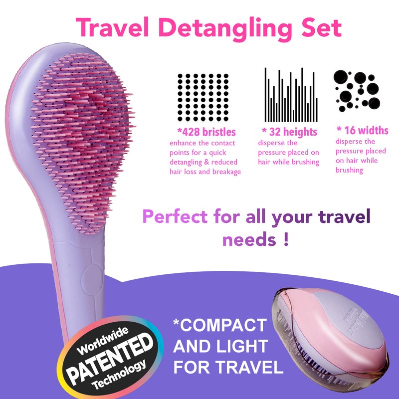 - DETANGLER BRUSH SET OF 2 – This convenient detangle brush set includes 2 brushes: one for everyday use and one for on the go. The full-size model is your daily detangling essential, while the smaller travel version is the perfect size to slip into your tote or toiletries bag.