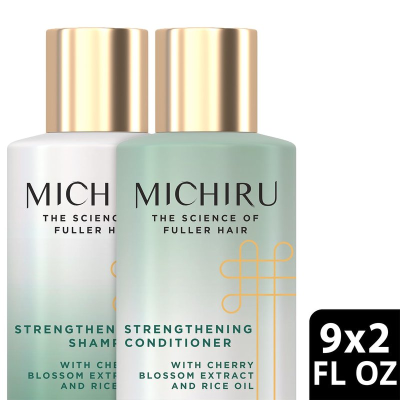 Michiru Strength Shampoo & Conditioner Set – Cherry Blossom & Rice Oil, Nourishing Scalp Treatment for Hair Repair & Hair Strengthening for Fine or Damaged Hair, 9 Oz Ea (2 Piece Set)