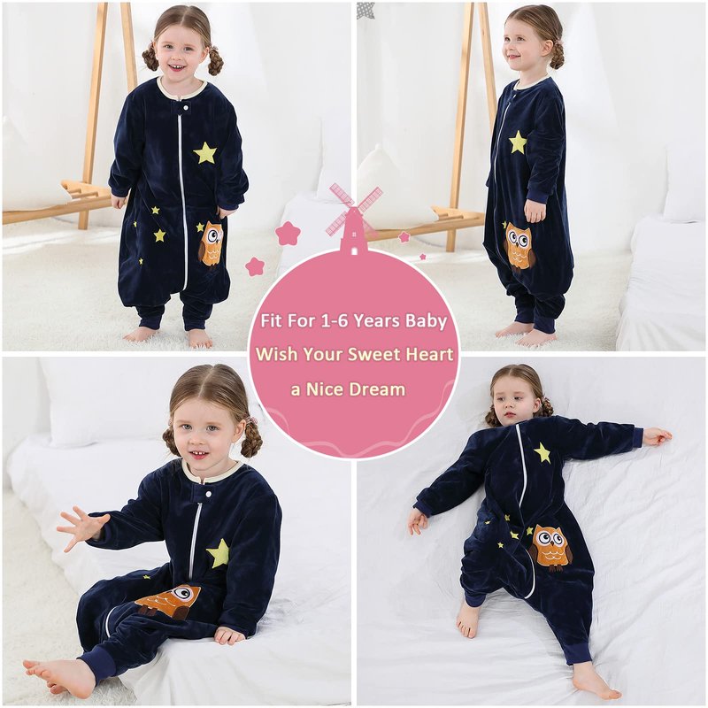 MICHLEY Baby Sleeping Bag Sack Long Sleeve with Feet Winter Swaddle Wearable Blanket for Boys Girls,Owl,5-6Years